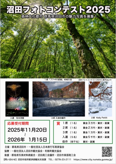 ・入賞作品以外の作品データは主催者が責任を持って処分いたします。 ・作品応募に際して収集した個人情報は適切に管理いたします。また、応募者・入賞者への連絡、コンテストの結果発表や作品紹介に使用します。その他コンテスト・写真教室・撮影会・沼田市主催のイベントなどの紹介に利用することがあります。 ・応募作品に関して第三者との権利侵害など問題が生じた場合、主催者は一切の責任を負いません。 ・応募作品はいかなる場合も返却いたしません。 ・プリントでの応募による運送中の事故破損に関して当方は責任を負いません。 ・応募いただいた作品は入賞作品確定後に主催者が責任を持って処分いたします。
